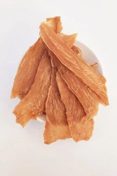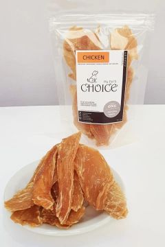 Pechuga de pollo deshidratada, monoingrediente, sin aditivos ni quimicos.