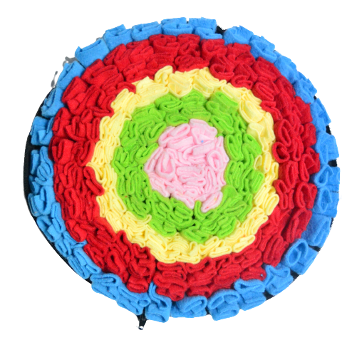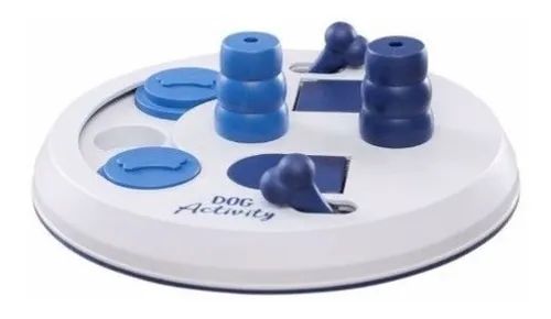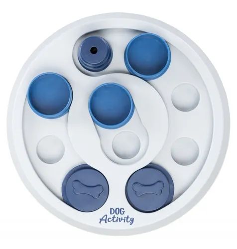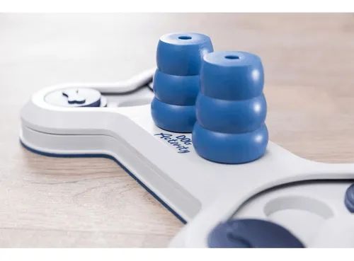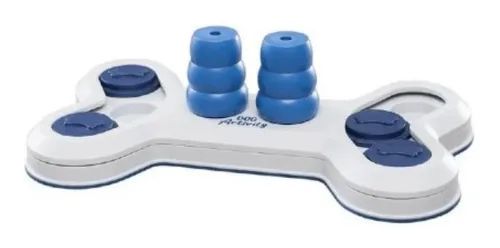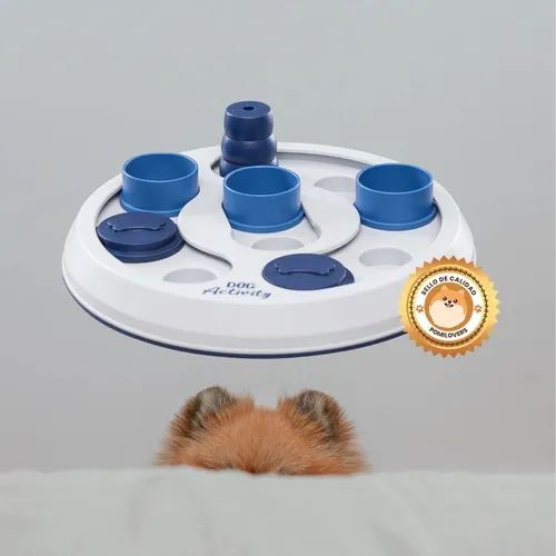El perro tiene que meter su hocico en cada agujero para poder llegar a los premios. Ideal para una frustración baja o perros con el hocico mas grande.