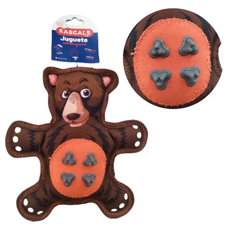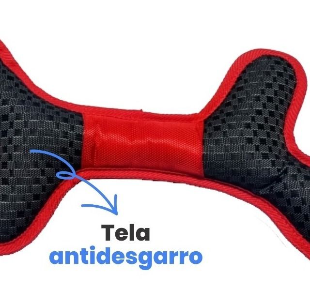 Hecho con TPR y tela antidesgarro. Tiene chifle y botones de gomita para masajear encías.