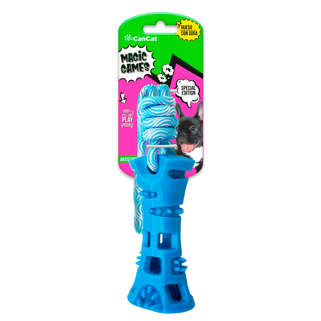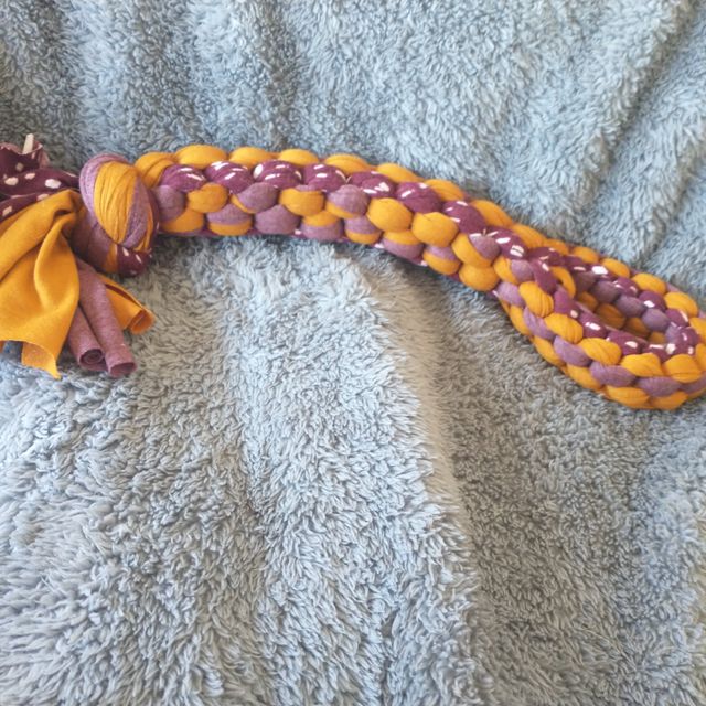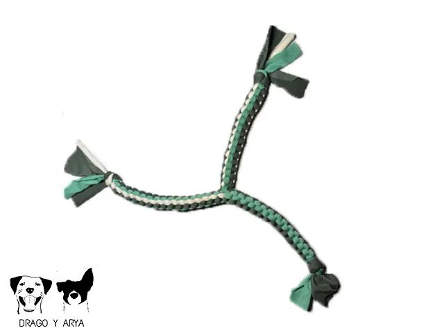 Una soga triple para jugar entre 3 sean perros o perros y humanos.
